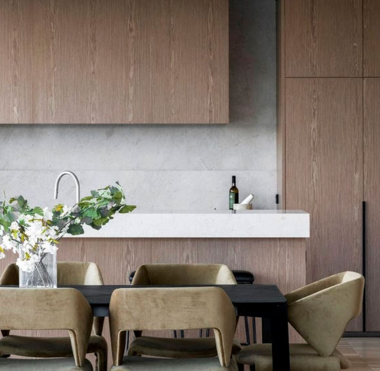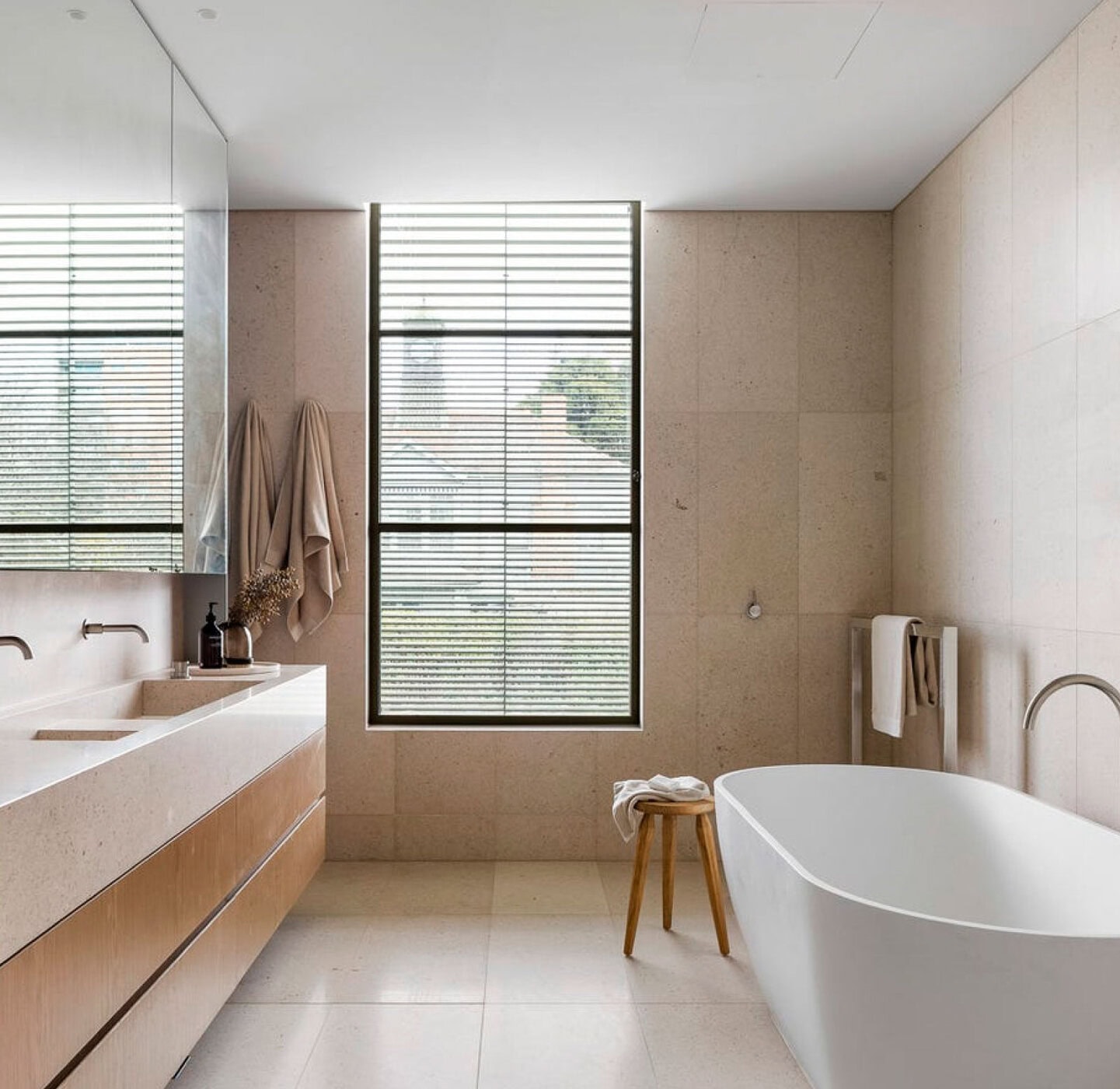 - Interiors layered with natural stone, warm timber, and custom joinery