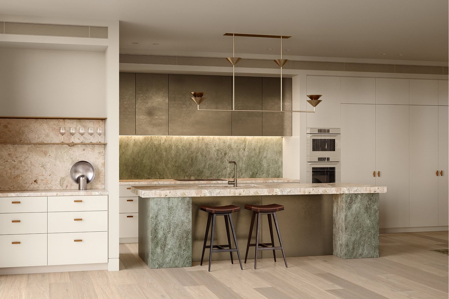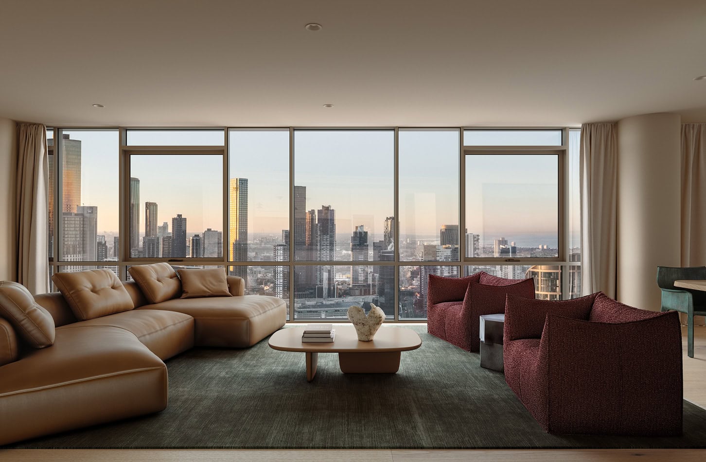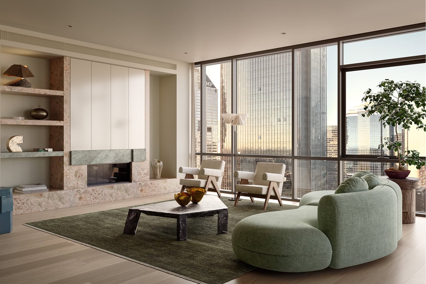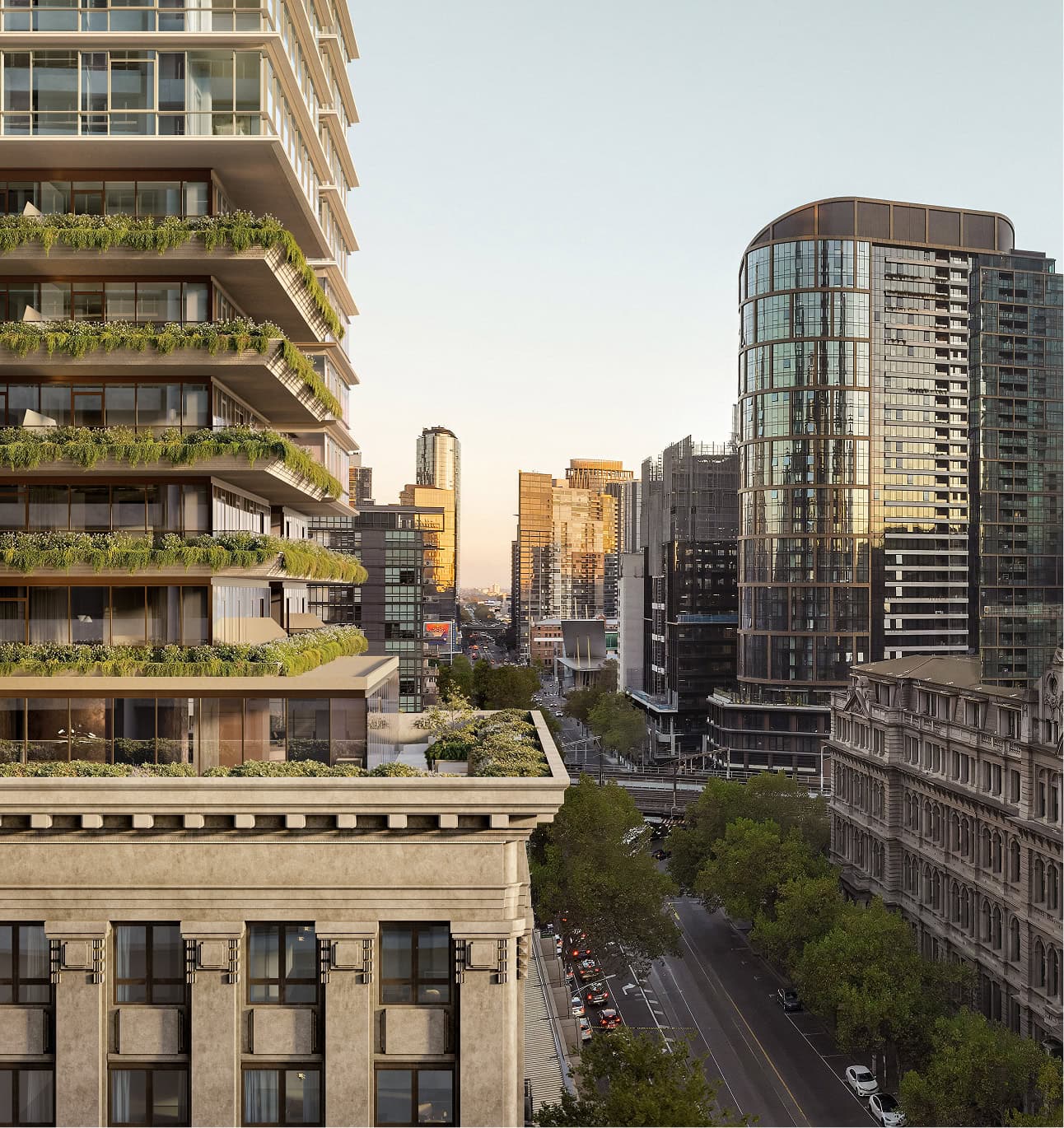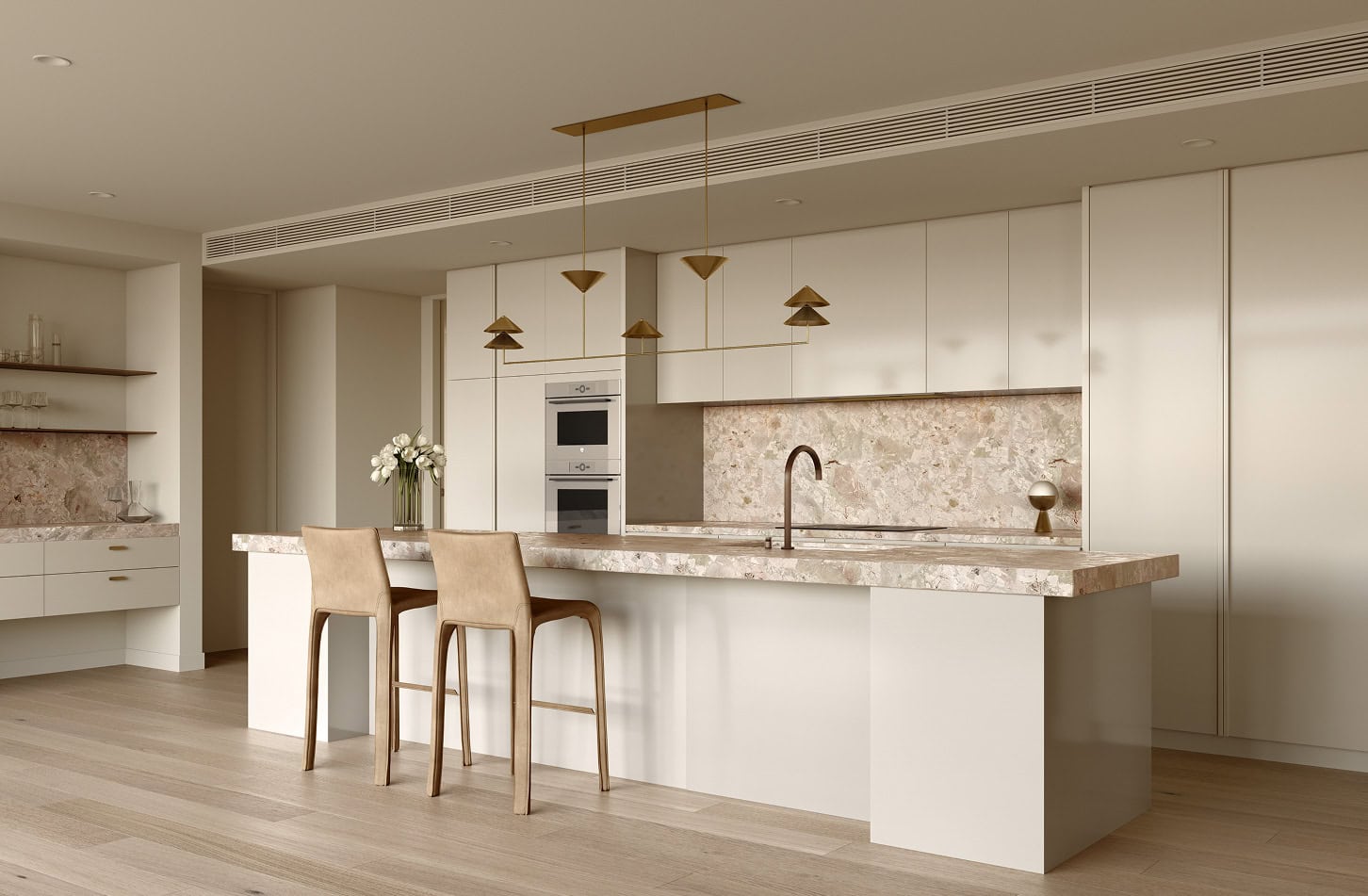 Melbourne Each residence features contrasting materials, which reflect the site’s layered history. Here, warm textures are offset by sleek, contemporary surfaces. This interplay creates depth without excess, richness without ostentation. This vision preserves the building’s longstanding character while providing a distinctly contemporary backdrop, ensuring each home feels simultaneously timeless yet of the moment.