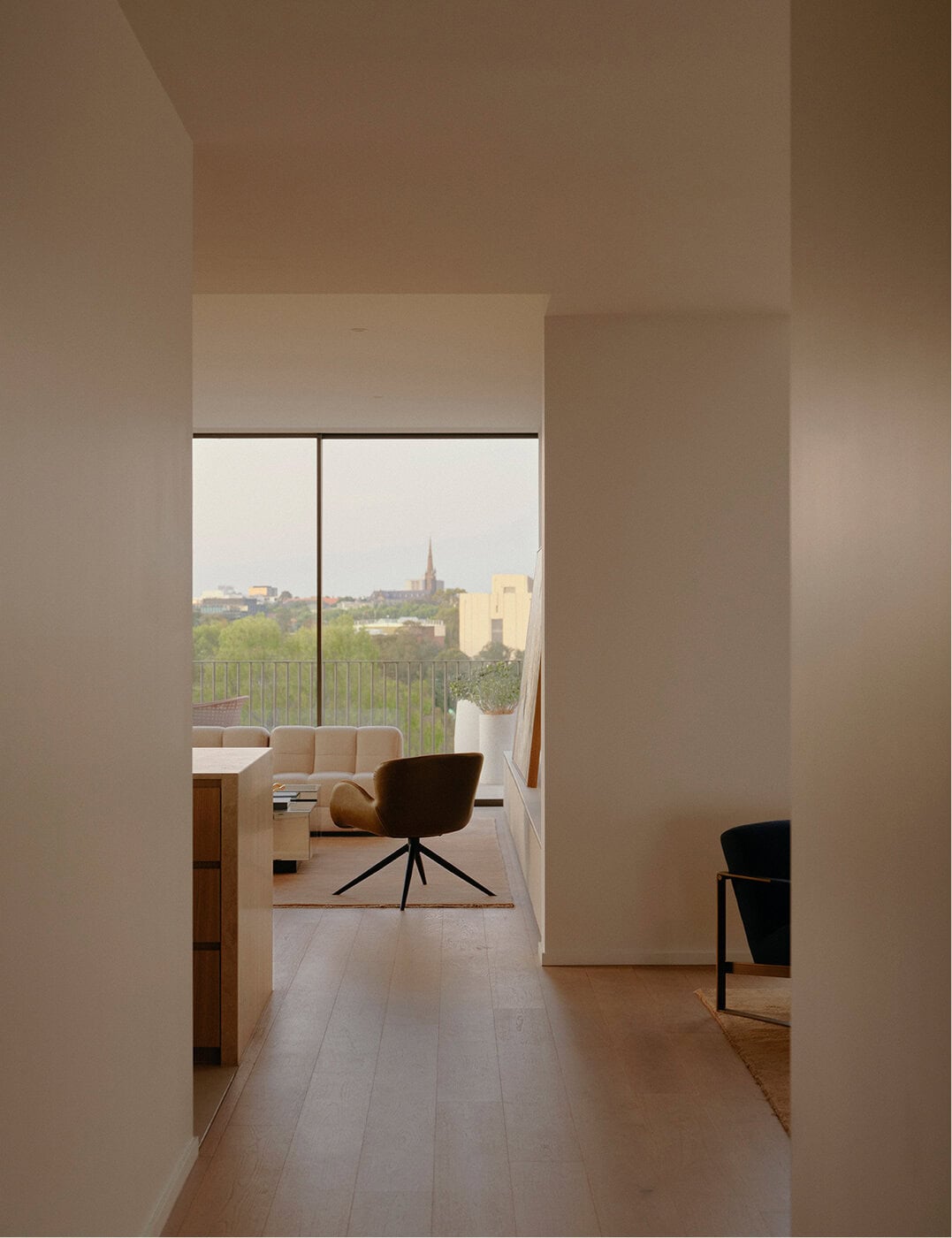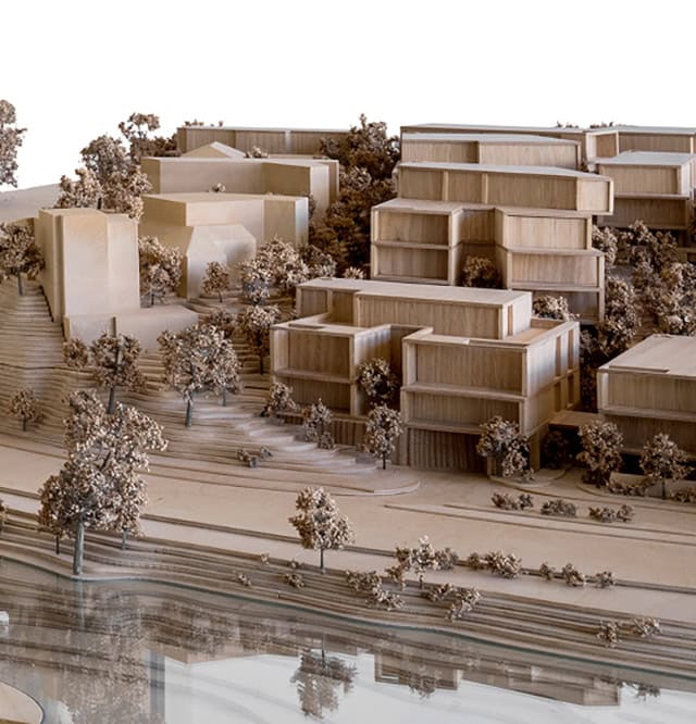 At the riverbank level, buildings align with the Yarra’s gentle curves while the upper tier rotates strategically to capture expansive vistas without compromising the privacy of each residence. This careful choreography ensures no home overlooks another, while respecting the privacy of the seven existing neighbouring buildings that frame the site. Here, the architecture follows the land’s natural contours, meandering and nestling into the site’s steep topography.