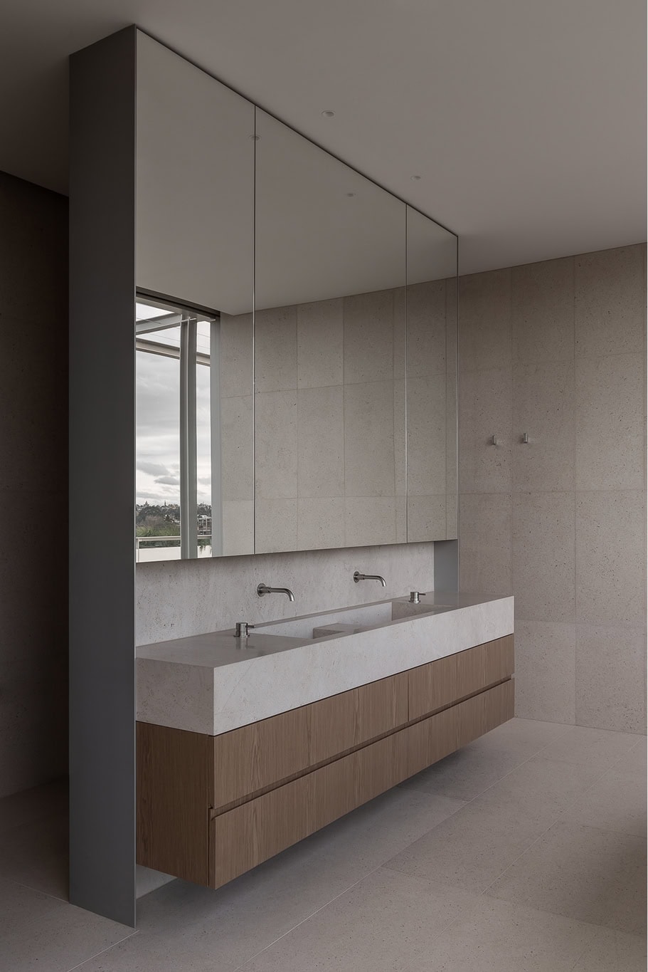 Clad in Portuguese limestone and with sculpted columns and layered gardens from the team at Acre, Heyington presents a sanctuary of calm and timeless form. Interiors continue the restrained story through a palette of natural stone and timber parquetry. Generous proportions throughout include gallery-style corridors and expansive terraces that seamlessly blend indoor comfort with outdoor vibrancy. A masterclass in contextual sensitivity, spatial generosity, and craftsmanship, Heyington is a rare expression of elevated living in one of Melbourne’s most prestigious suburbs.